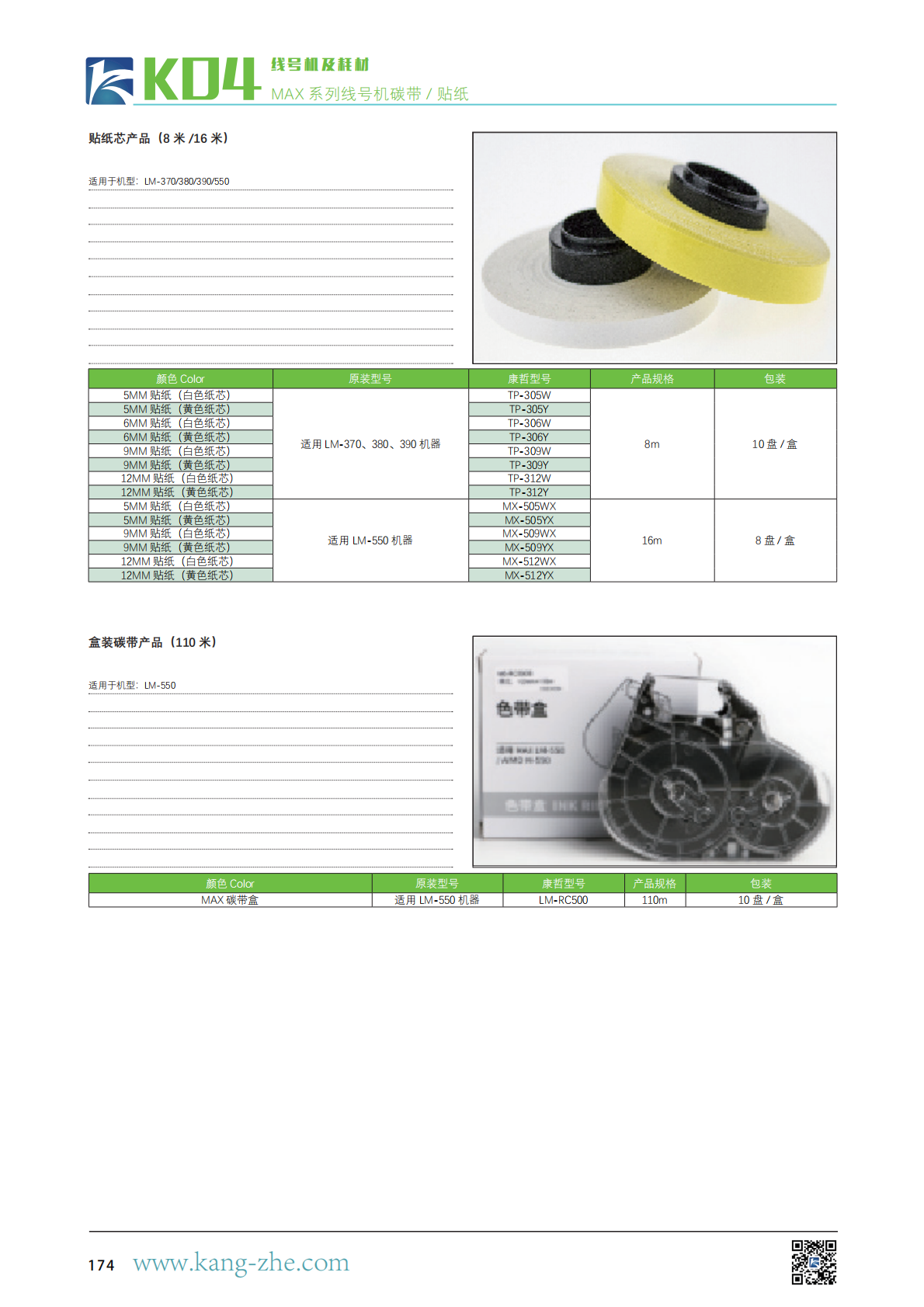 K04 线号机及耗材 MAX 系列线号机碳带 / 贴纸 MAX Series Wire Number Machine and Consumables Carbon Tape/Stickers
