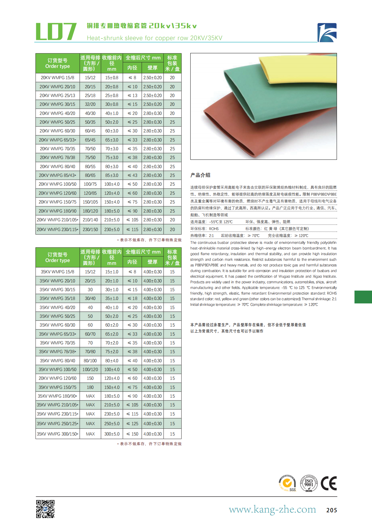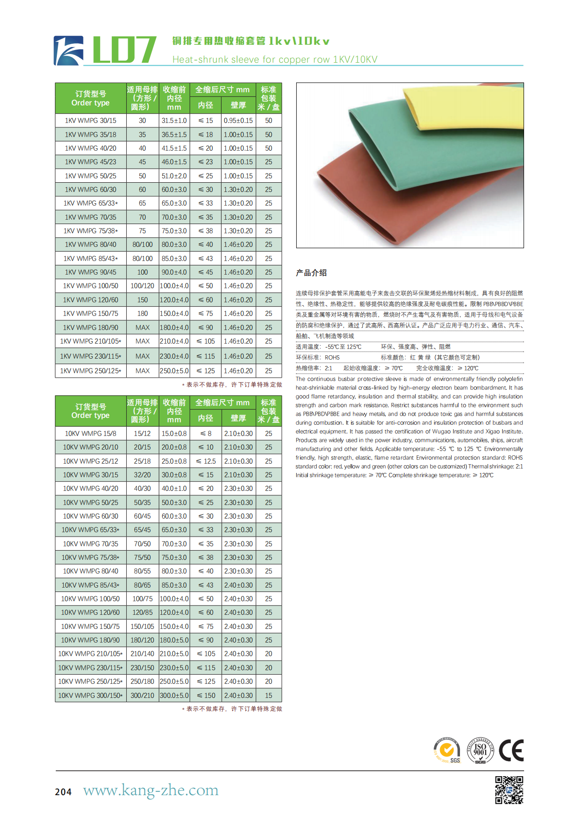 standard color: red, yellow and green (other colors can be customized) Thermal shrinkage: 2:1