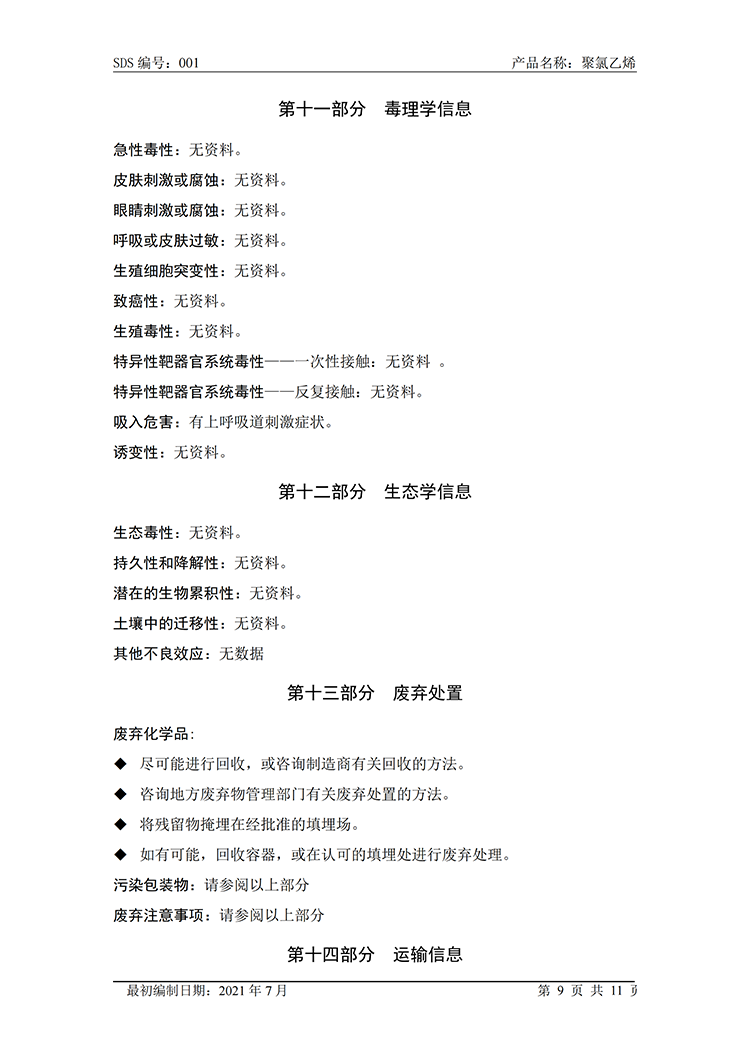 聚氯乙烯PVC化学品MSDS说明书(11.26)