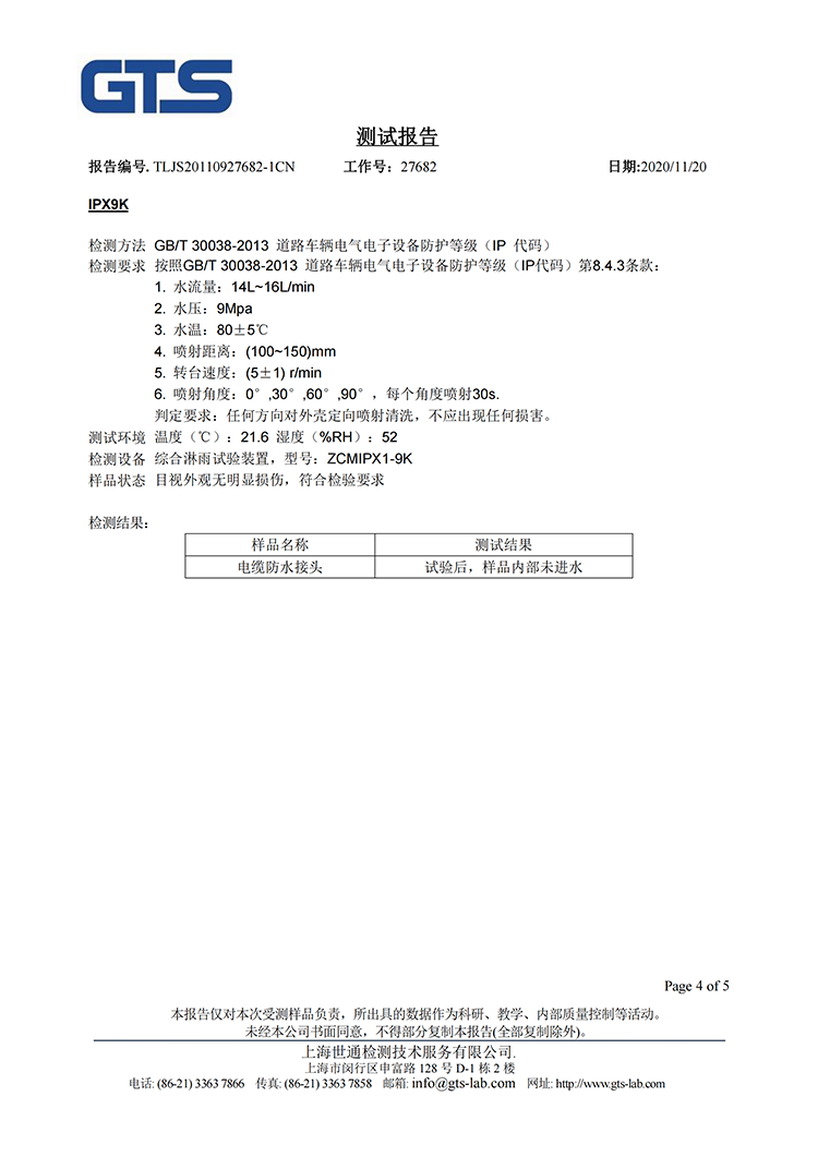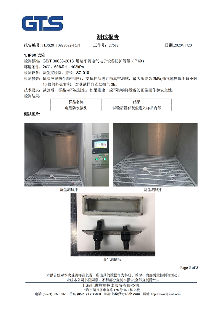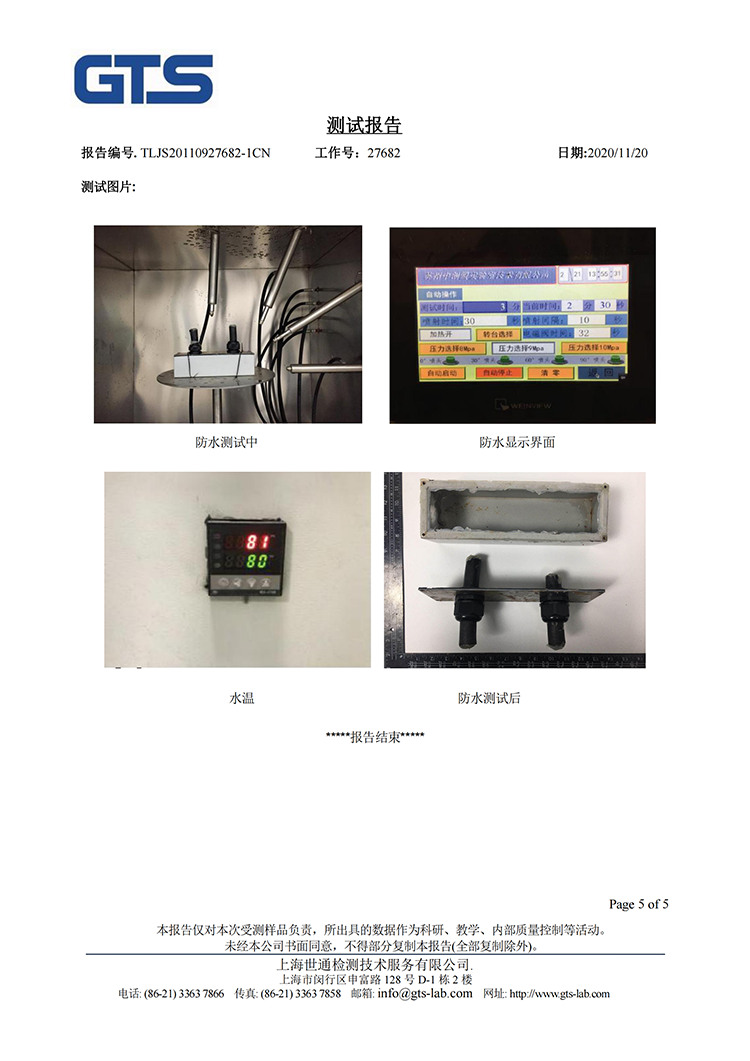 尼龙电缆接头IP69报告