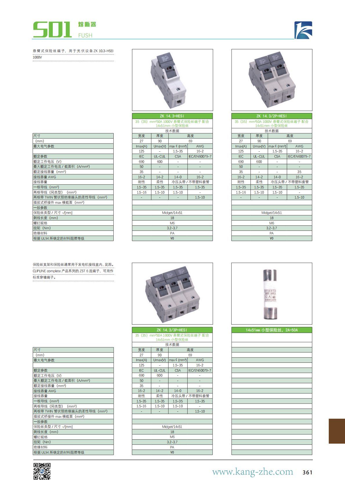 悬 臂 式 保 险 丝 端 子, 用 于 光 伏 设 备 ZK 10.3-HSEI