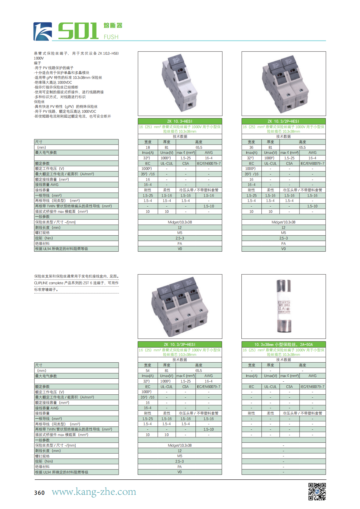 ·适用带 gPV 特性的标准 10.3x38mm 保险丝